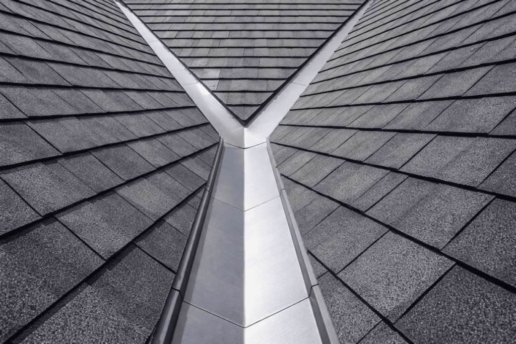 谷樋は屋根の谷部分(雨水が集まる中央の溝)に取り付けられ、排水の要となる部分です。