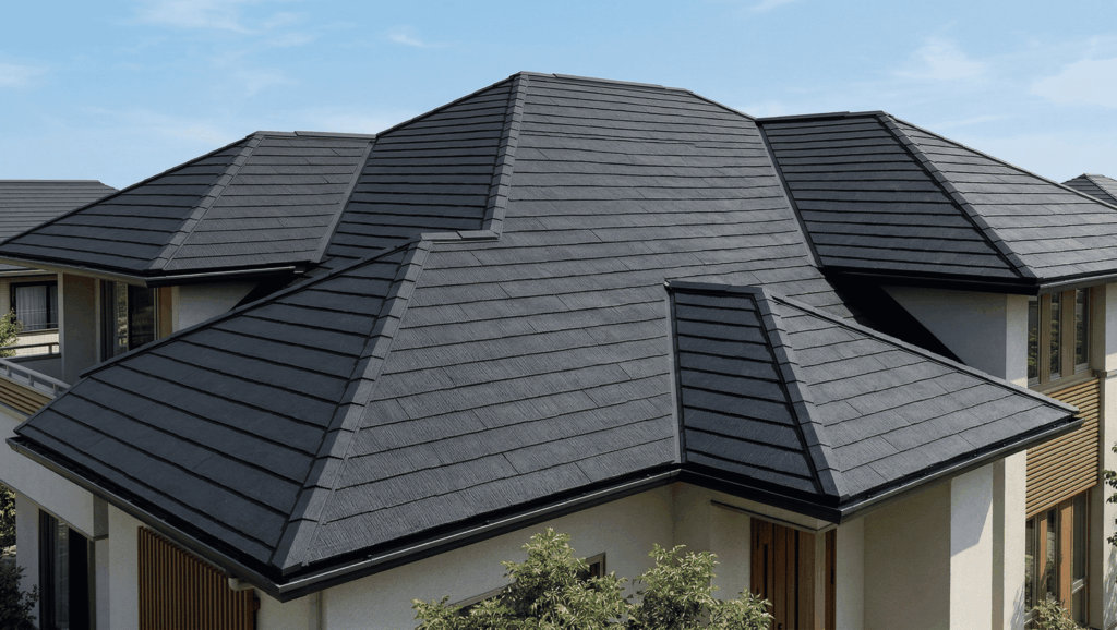 ケイミュー製の高耐候スレートで、防水・防汚・退色性能が強化された最新モデルです。