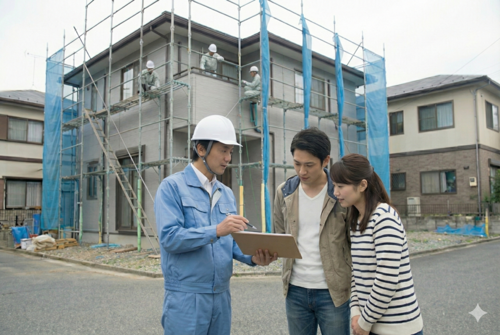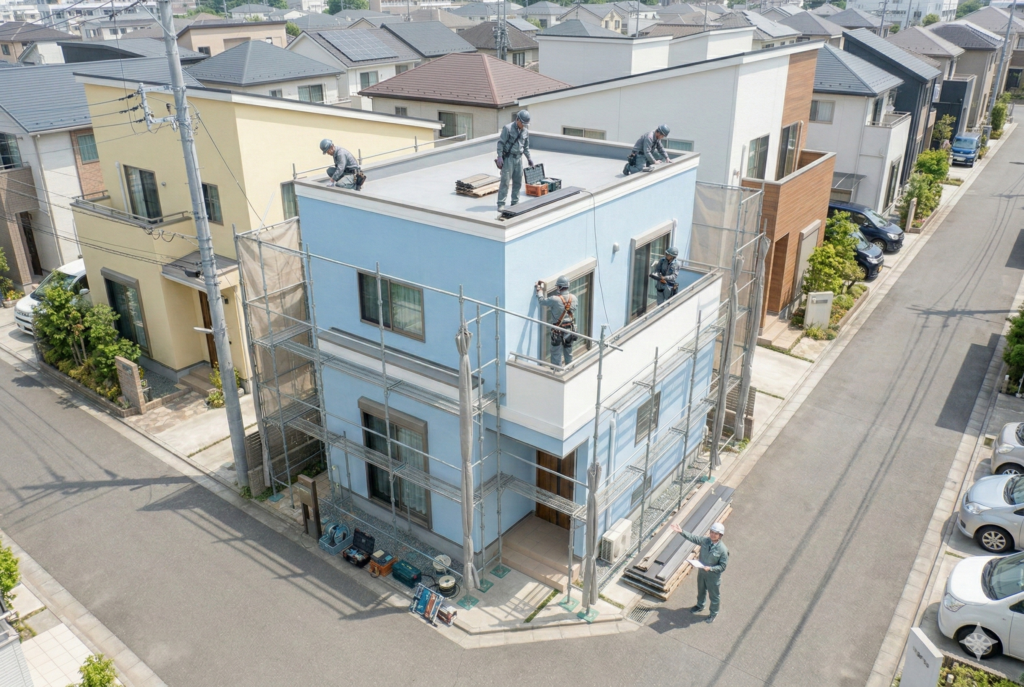 下地補修、防水シート、足場設置、保証内容の有無を確認しましょう。