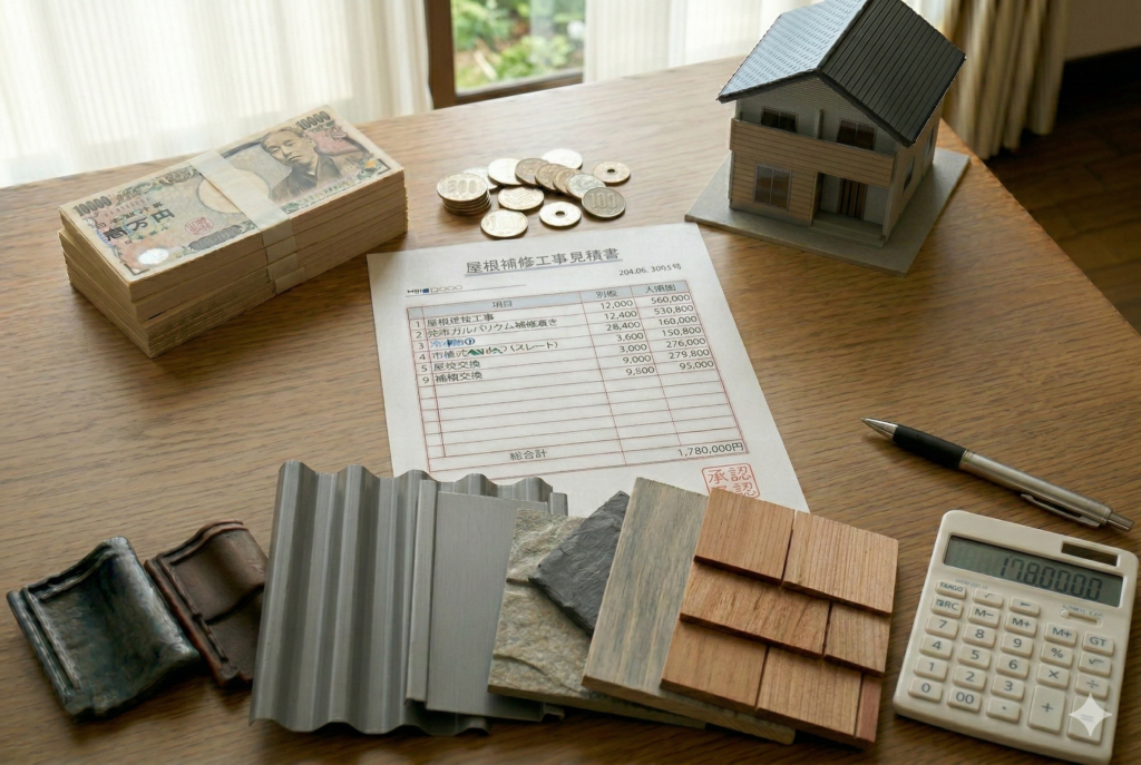 使用する屋根材の種類や下地の補修範囲、足場や防水シートの追加工事によって総額が変わります。
