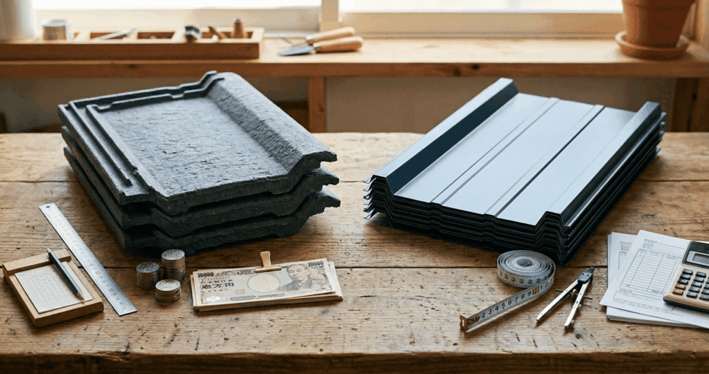 | 屋根材・副資材 | 約6,000〜8,000円/㎡ | 約5,000〜7,000円/㎡ |